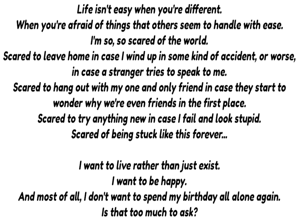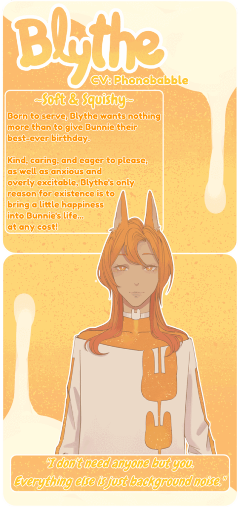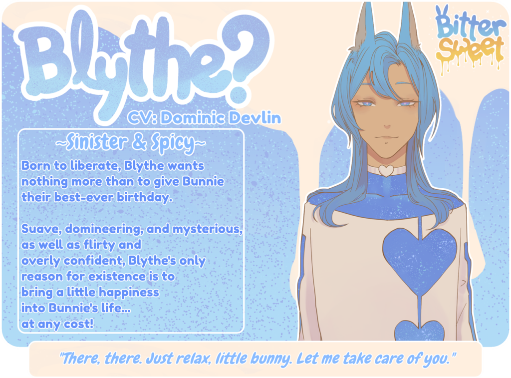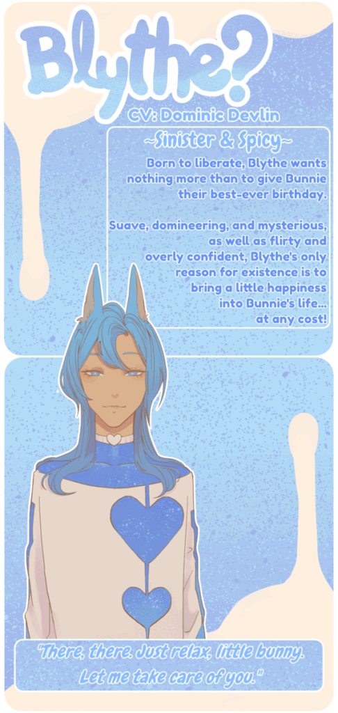 On their birthday, Bunnie (renameable + pick your pronouns) makes a wish, but will they get more than they bargained for when a bunny-eared being named Blythe shows up to give them their best-ever birthday?