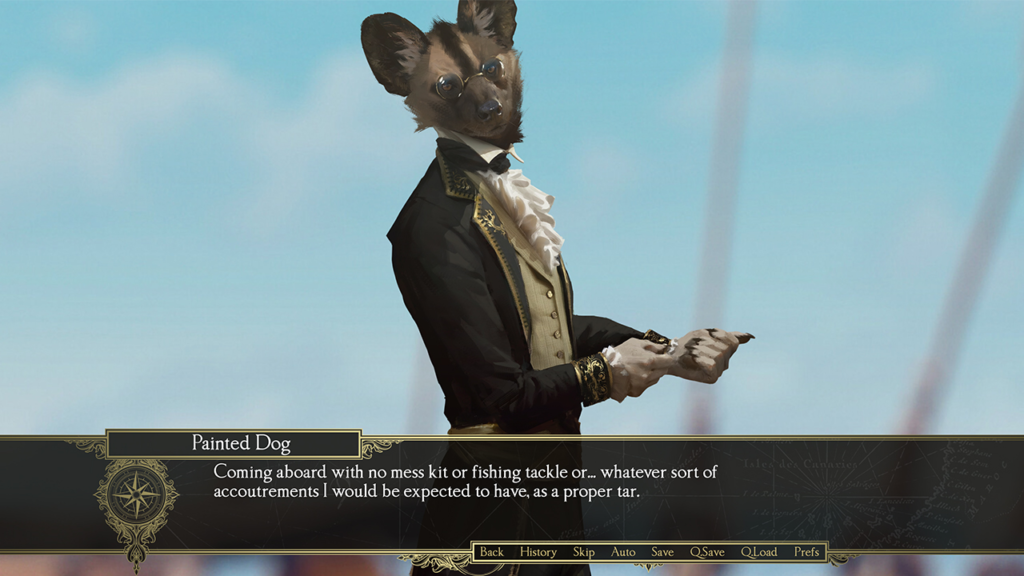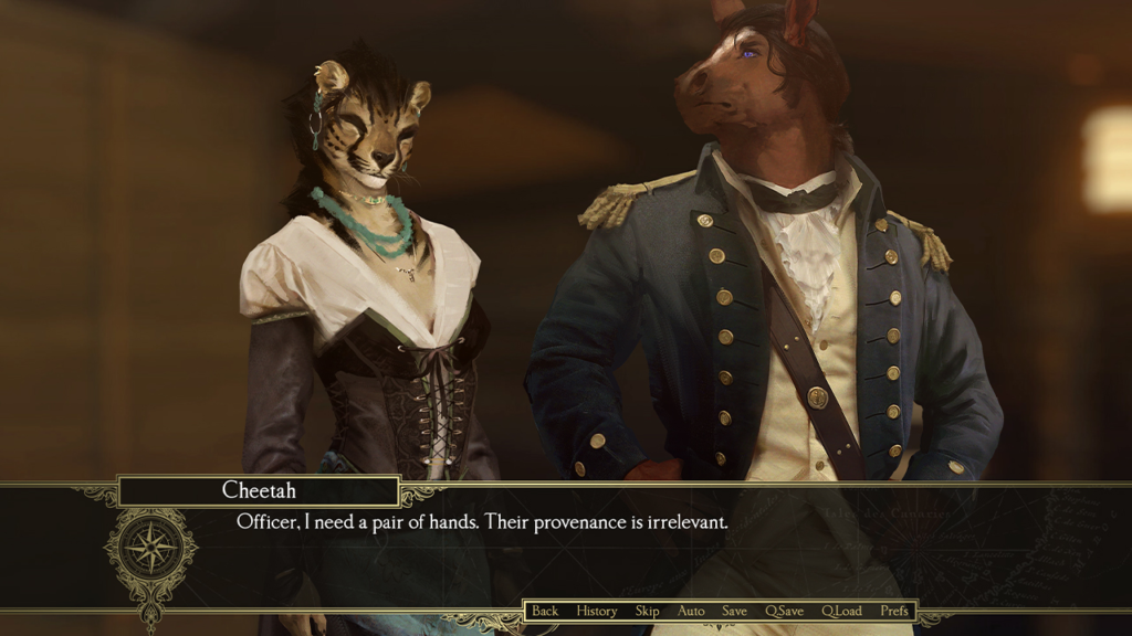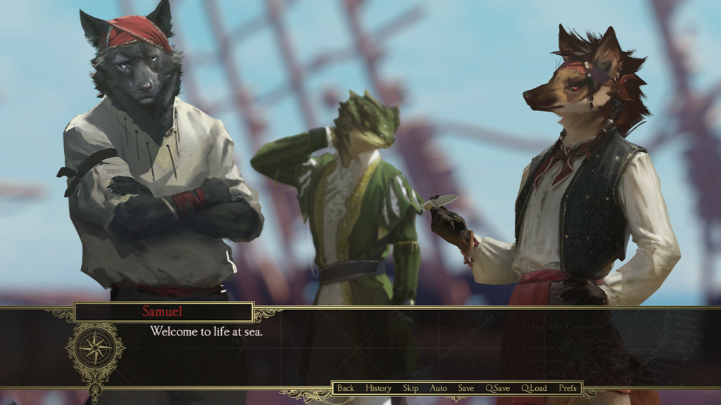 Conway is a laid-back, semi-linear, and (as best we could) historically accurate slice-of-life narrative. There aren’t any heroic conflicts, unfulfilled destiny, or daring exploits beneath a Jolly Roger. Instead, as you cruise the high seas from port to port, you’ll find yourself developing close relationships and friendships with a cast of distinctive people. So, have a seat, relax, and remember to take your vitamin C!