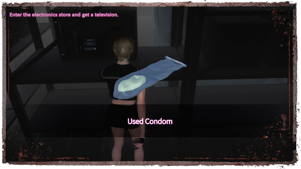 To unlock a secret ending, locate every used condom, gather them, and hang them on your wall. They are dispersed around the town!