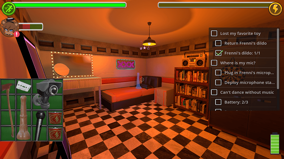 - Mechanics of Animatronics: Each animatronic has a unique set of tasks that, when completed, reveal an interactive scene. Keeping a single animatronic at bay might seem simple, but dealing with an entire harem that demands your undivided attention can be really challenging. Their level of contentment will drop and they will go into wrath mode if you allow their requests to accumulate or expire. You never know what will happen, I promise. Additionally, if you choose one girl over the other when they both ask you the same question, some of the girls may become upset. You can always hide in the control room if none of it works. Unless you run out of power, no animatronic can leave its doors.