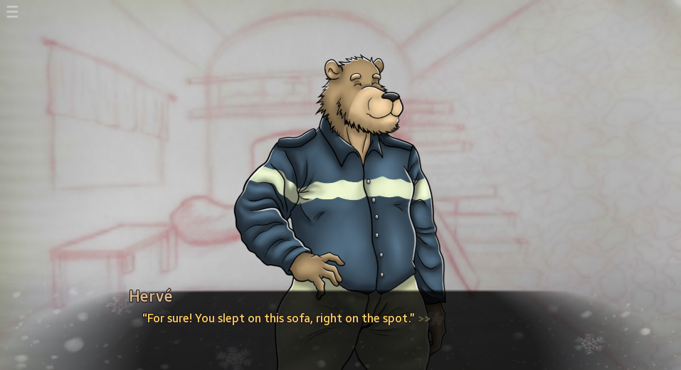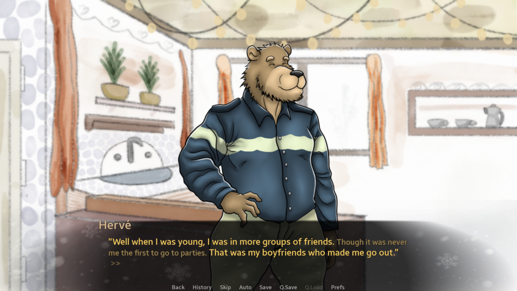 Hervé has always been there to support you on Discord when you were in college, even though you are very different in age. He is a powerful character who is constantly there, much like a mentor. You will have to choose between pursuing your job and allowing this strange connection to blossom.