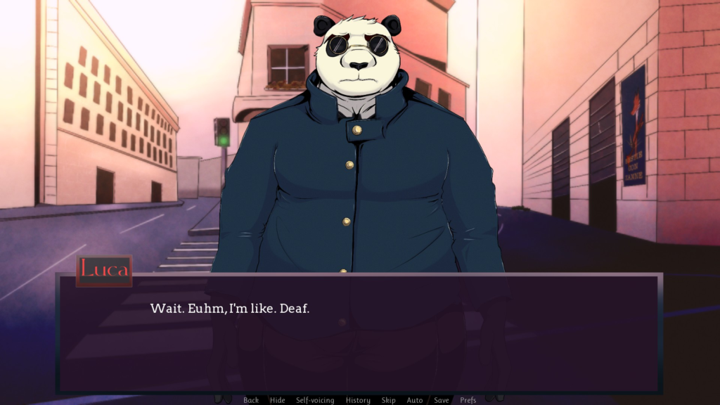 Stars In Your Eyes alternates between two main characters. One is blind, while the other is deaf. Apart from the text, the game will mostly only be shown using images or music. Sound captions are used in this game. When utilizing the self-voicing feature, visuals and key expression modifications are explained (this capability is not accessible for Android). Additionally, you may activate a function that will alert you when there will be abrupt or unsettling sound effects as well as when there will be a change from quiet to noise.