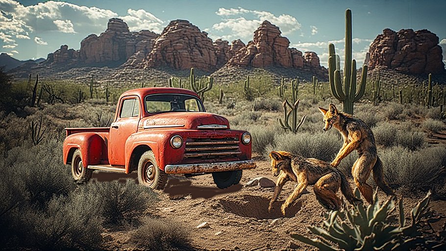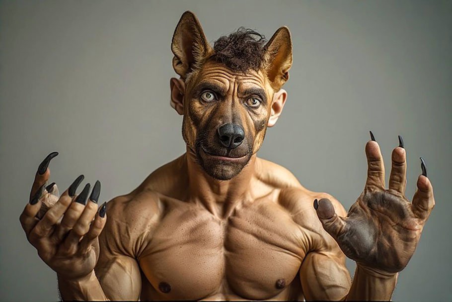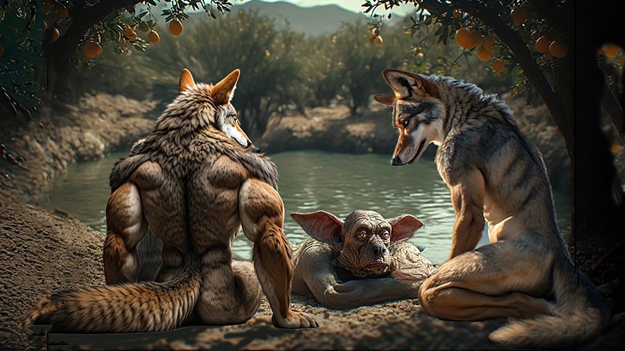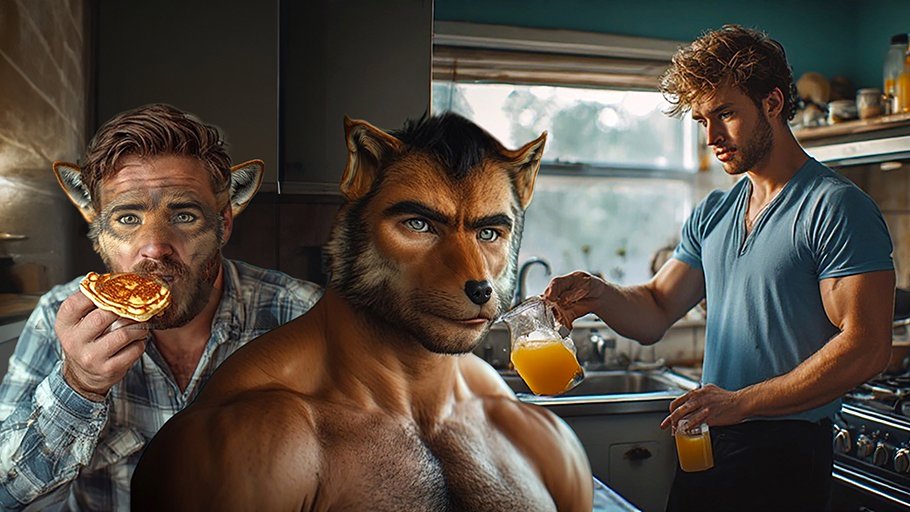 By breakfast, the farmers begin displaying dramatic physical changes. At sunrise, a series of strange events completes Joe and Steve’s transformation into “skin walkers,” a term used by Indigenous people to describe humans who can shift into enormous coyotes at will. Unfortunately, their transformation coincides with the arrival of three state inspectors conducting routine official duties. Unable to hide their new forms, Joe and Steve reveal themselves as towering, bipedal coyotes. The inspectors panic and are accidentally killed in the chaos.