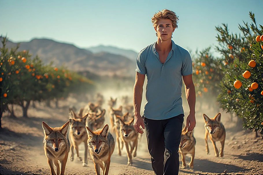 Harry saves the day when state attorneys attempt to revoke the farms’ water rights. He spends much of his time outdoors, tending to machinery and connecting with the coyotes that inhabit the nearby desert. Over time, the animals grow increasingly fearless, wandering into the farmyards and howling through the night. Meanwhile, Joe and Steve unintentionally become lovers, with Joe losing his virginity in the process.