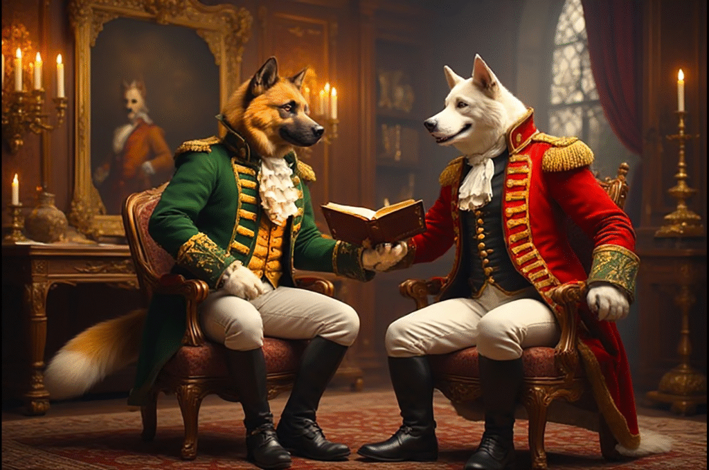 Canine society in our continuum—already strange to your perspective—was even more peculiar three hundred years ago: extreme gender imbalance, hidden women, rigid hierarchies, and social norms far stranger than eighteenth-century human society.