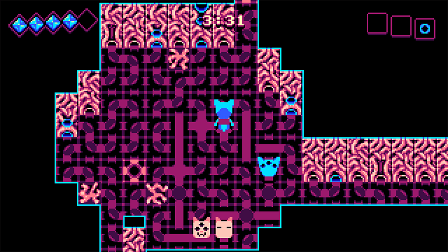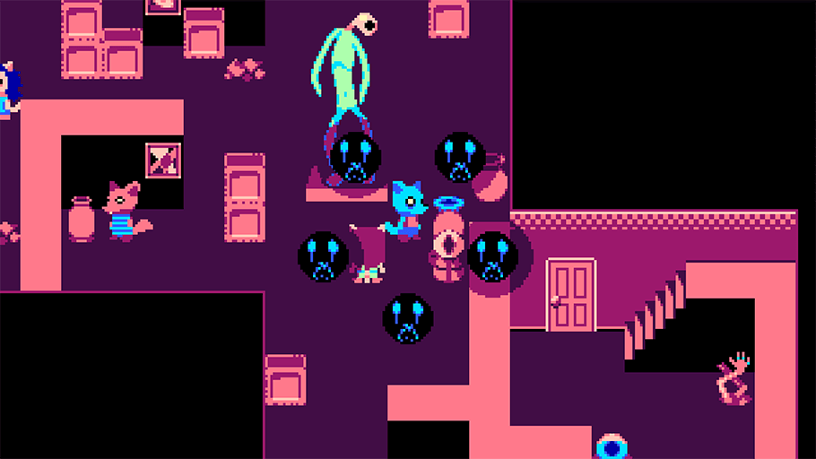 The game offers multiple possible outcomes for its characters, challenging environmental puzzles, and distinctive hand-drawn pixel art with a limited color palette.