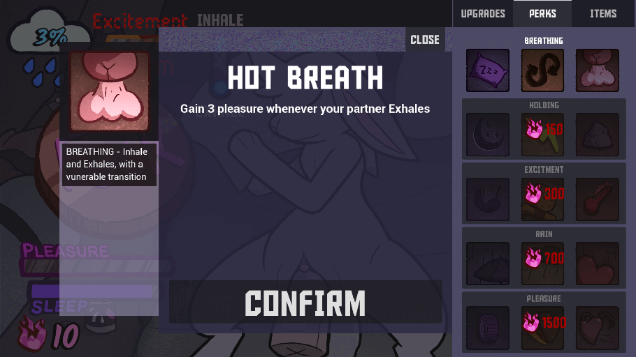 Your partner has asked you to try to fuck them through the night without waking them up in Waking Up To You, an incremental clicker. has a focus on creating intriguing and expressive constructions through its upgrades and sex as its main mechanic. A consensual somniphilia game where you satisfy the kink of someone you love, and a clicker that never turns into an idle game.